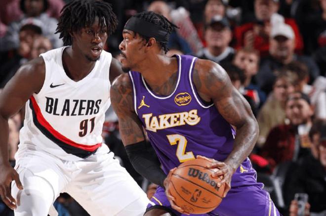 本场比赛,双方在首发阵容上面,湖人这边派出的是,八村塁,艾顿,拉拉维亚,斯马特,克内克特。开拓者这边派出的是,阿夫迪亚,霍勒迪,夏普,卡马拉和克林根。首节比赛开始,湖人第一攻,斯马特借掩护突破飞身上篮,打进本场比赛首个进球;艾顿罚球线处急停跳投同样也有,霍勒迪大步流星杀进内线为开拓者开张。